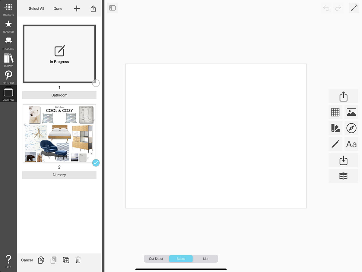 With Multipage in Morpholio Board, you can create interior design presentation decks, iterate through different design options, or compile multiple moodboards for different room designs in the same project. You can easily copy and paste between boards and edit your pages as needed.