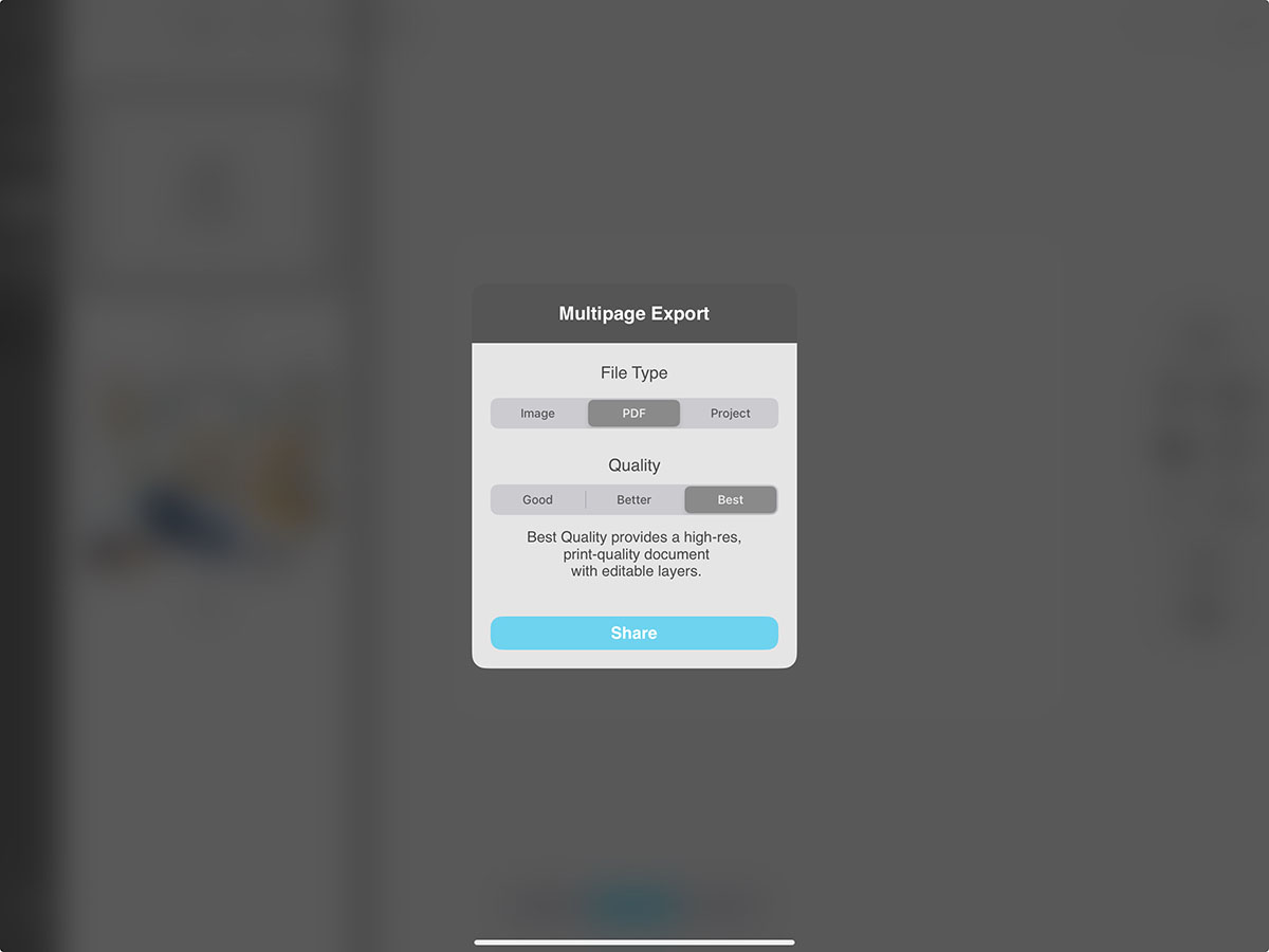 You can choose to export your boards as separate image files, a single PDF, or a project file with all your pages.