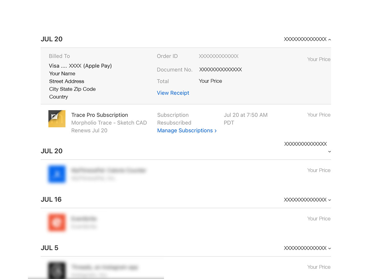 If you work at an office, your company may be willing to reimburse the cost of your subscription. If they haven't offered, it never hurts to ask! Typically, they will need a receipt or invoice for your subscription purchase to begin this reimbursement. You can follow the steps below to get a receipt for your subscription from Apple since Morpholio does not handle any billing directly.