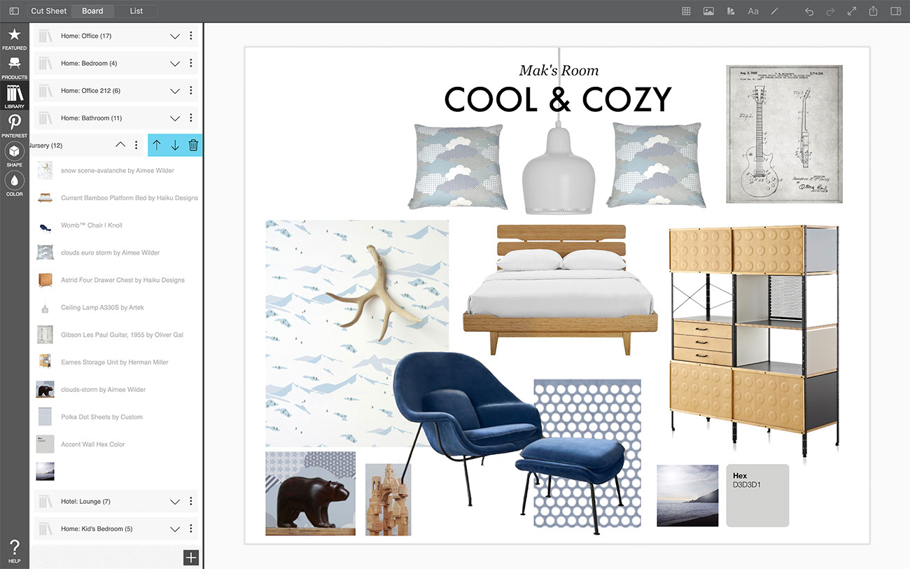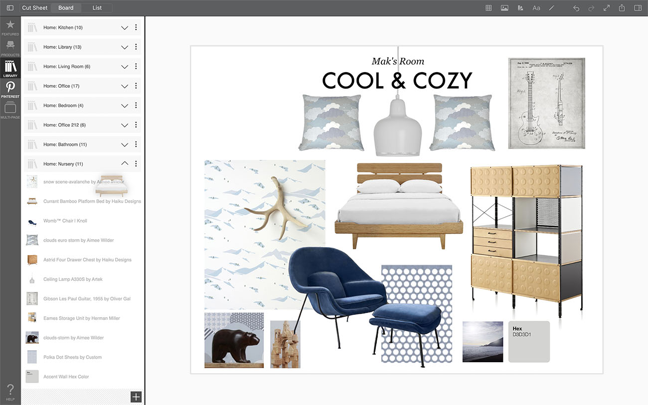 The beauty of an interior design moodboard or creative collage is that it comes from YOU. Your personality, interests, and design sensibility all shine through. To make it easy to maintain your personal brand, you can save all of your favorite products with your unique product notes in your personal library.