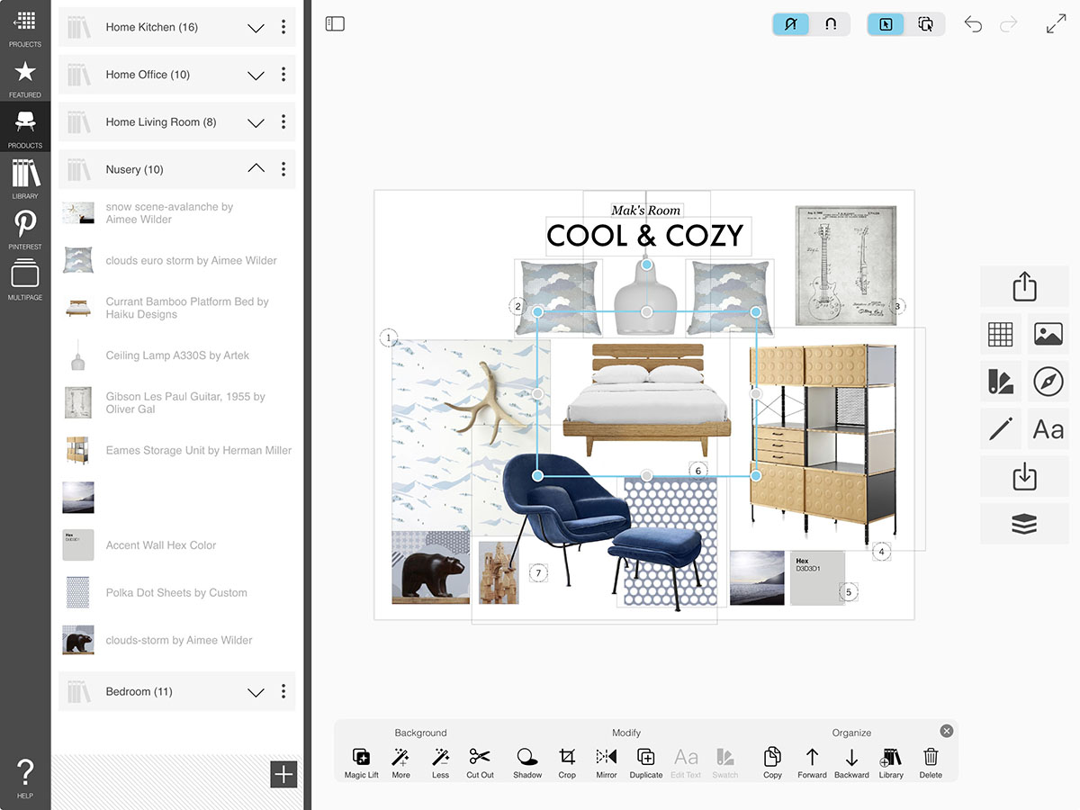 The beauty of an interior design moodboard or creative collage is that it comes from YOU. Your personality, interests, and design sensibility all shine through. To make it easy to maintain your personal brand, you can save all of your favorite products with your unique product notes in your personal library.