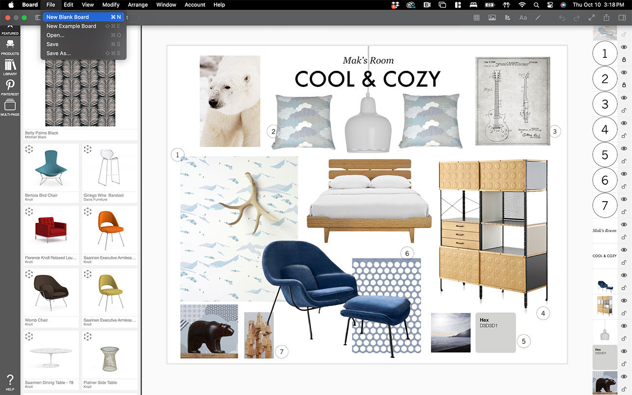 If you need some inspiration, start with a board that is pre-loaded with products from Morpholio Board's curated product library.
