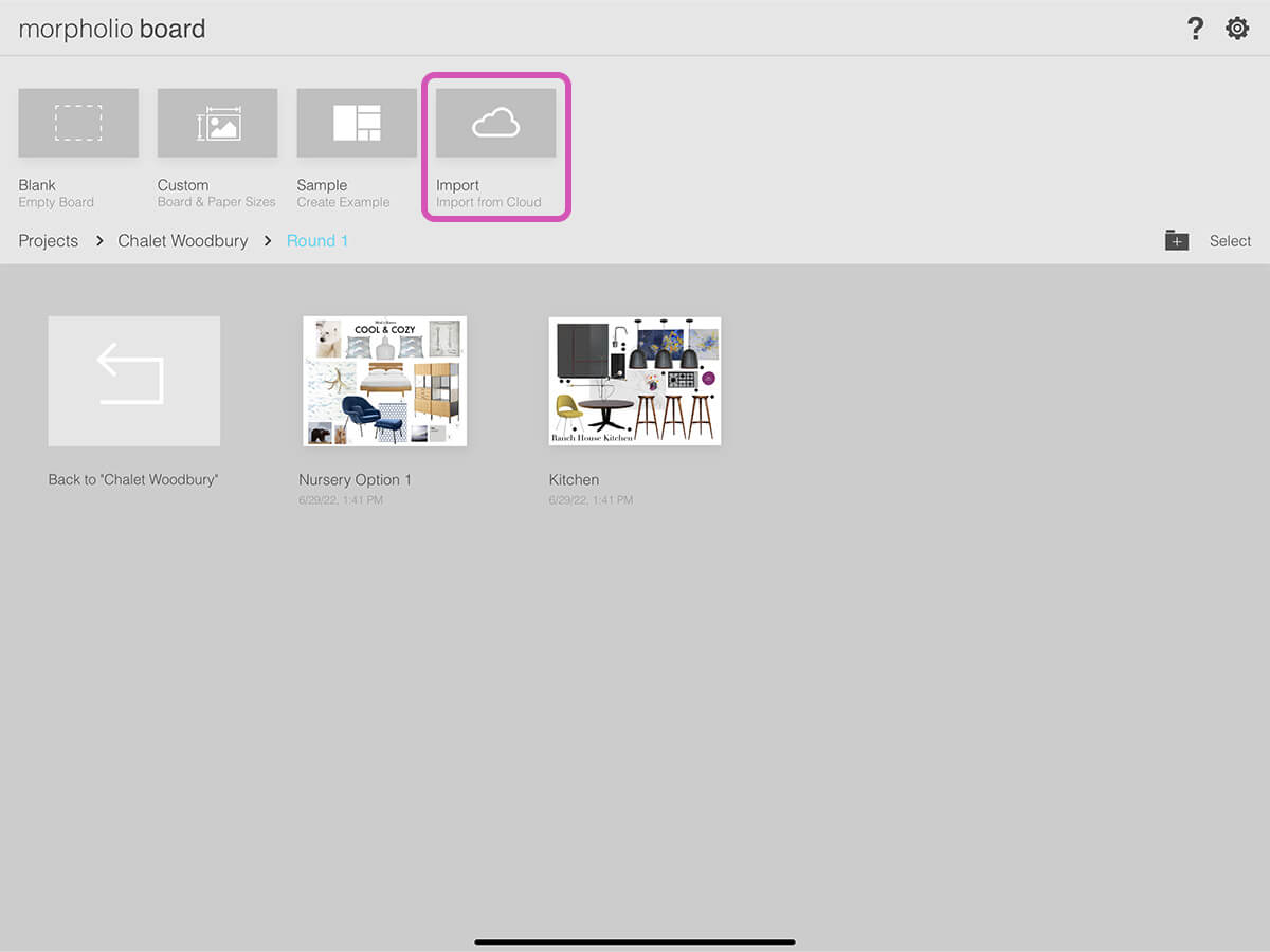 Tap "Import", and then "Cloud Drives". Next, locate the Board file that you want to import. After you select the file, it will be added to your project page.