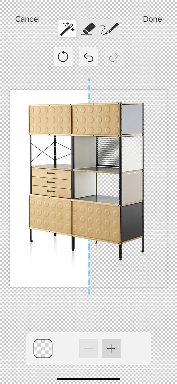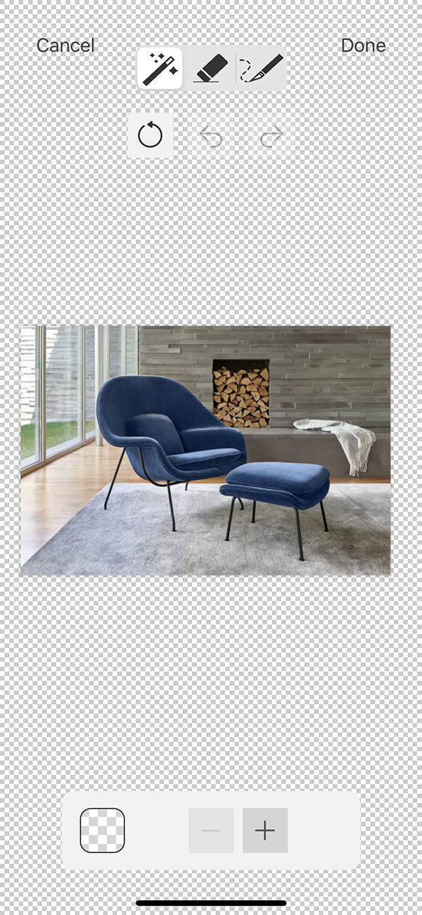 Board’s Magic Wand has long been a favorite tool. Use it to instantly remove white backgrounds from any image. Tap the "+" button to remove white from your selected image. Tap the "–" button to add white to your selected image.