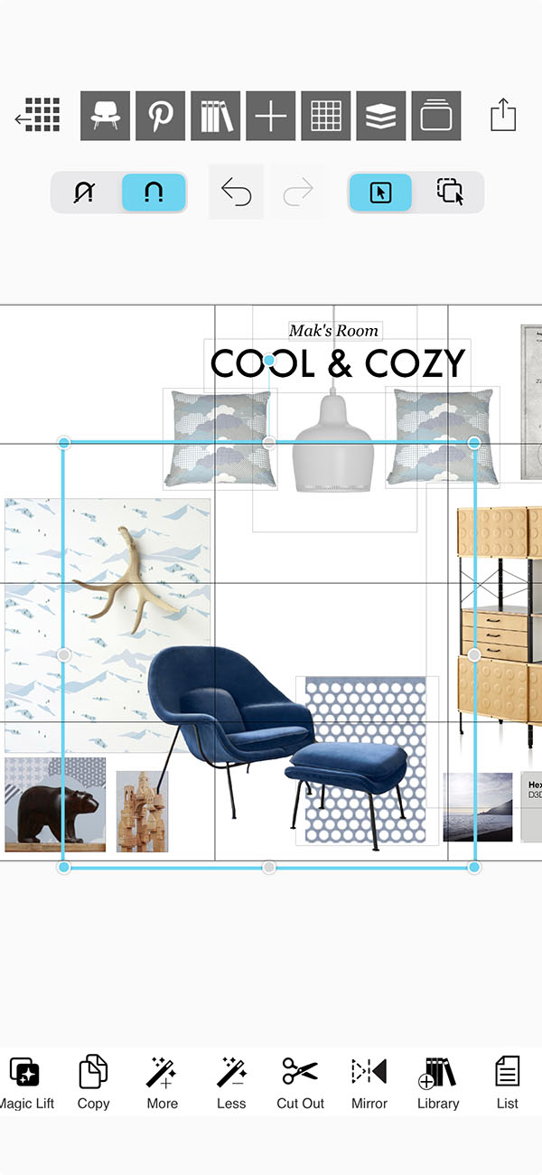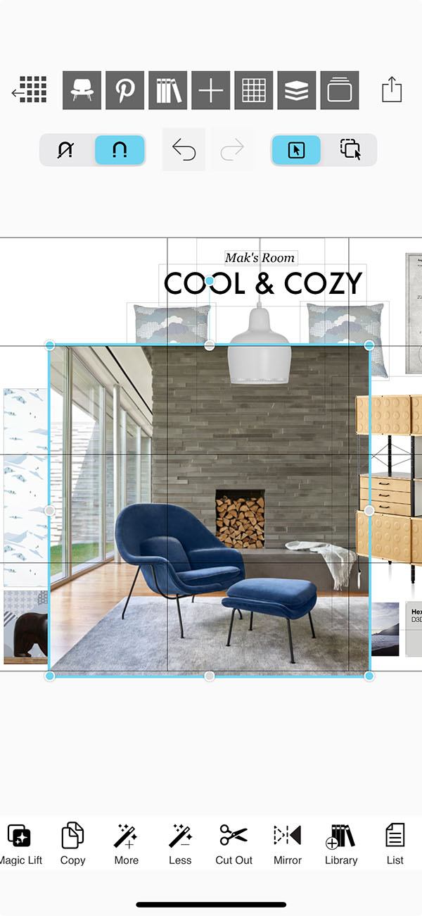 Select an image on your moodboard and then tap the "Cut Out" button.