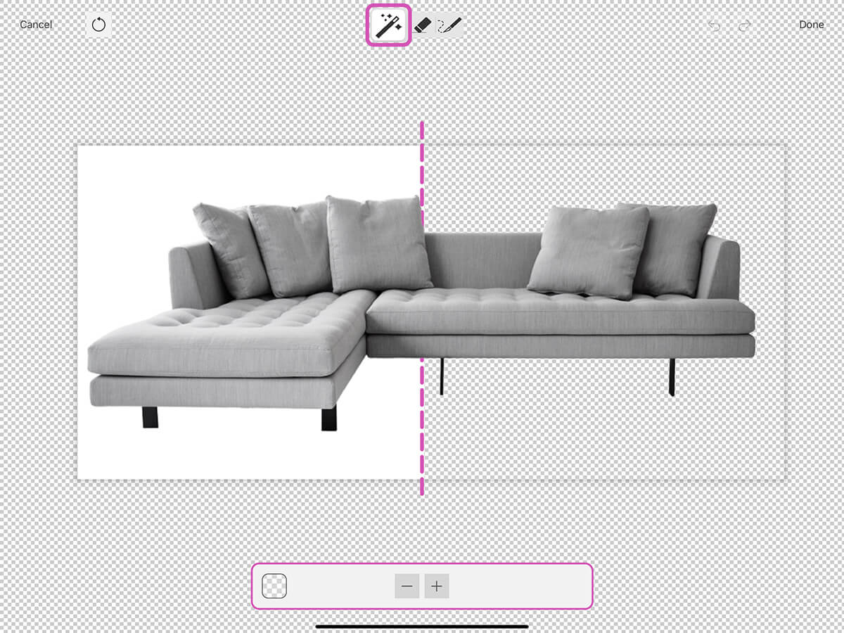 Board’s Magic Wand has long been a favorite tool. Use it to instantly remove white backgrounds from any image. Tap the "+" button to remove white from your selected image. Tap the "–" button to add white to your selected image.