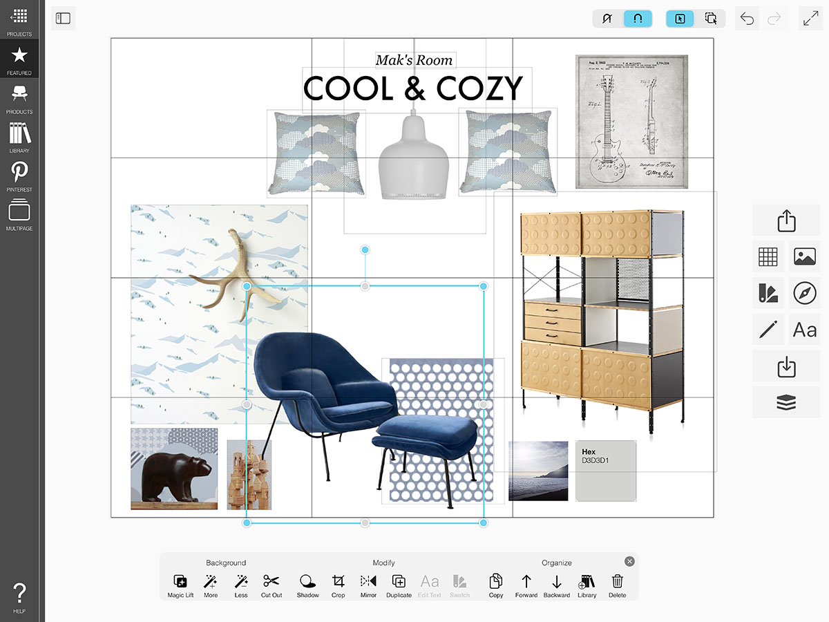 Resizing and rotating the images on your interior design or creative collage is easy with Morpholio Board.