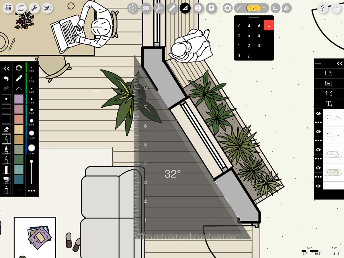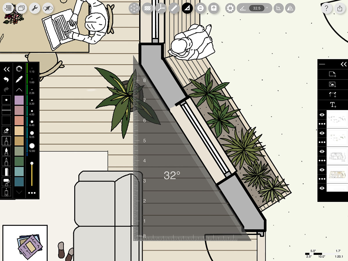 An adjustable triangle is a staple of every drafting setup. Morpholio has supercharged this tool for the best drawing app for iPad, transforming it into a Super Triangle for drawing accurate, straight lines at any angle!