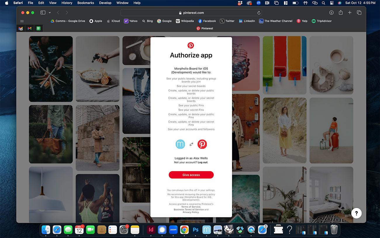 Then, select "Give Access" to connect Morpholio Board to Pinterest and accept the terms.