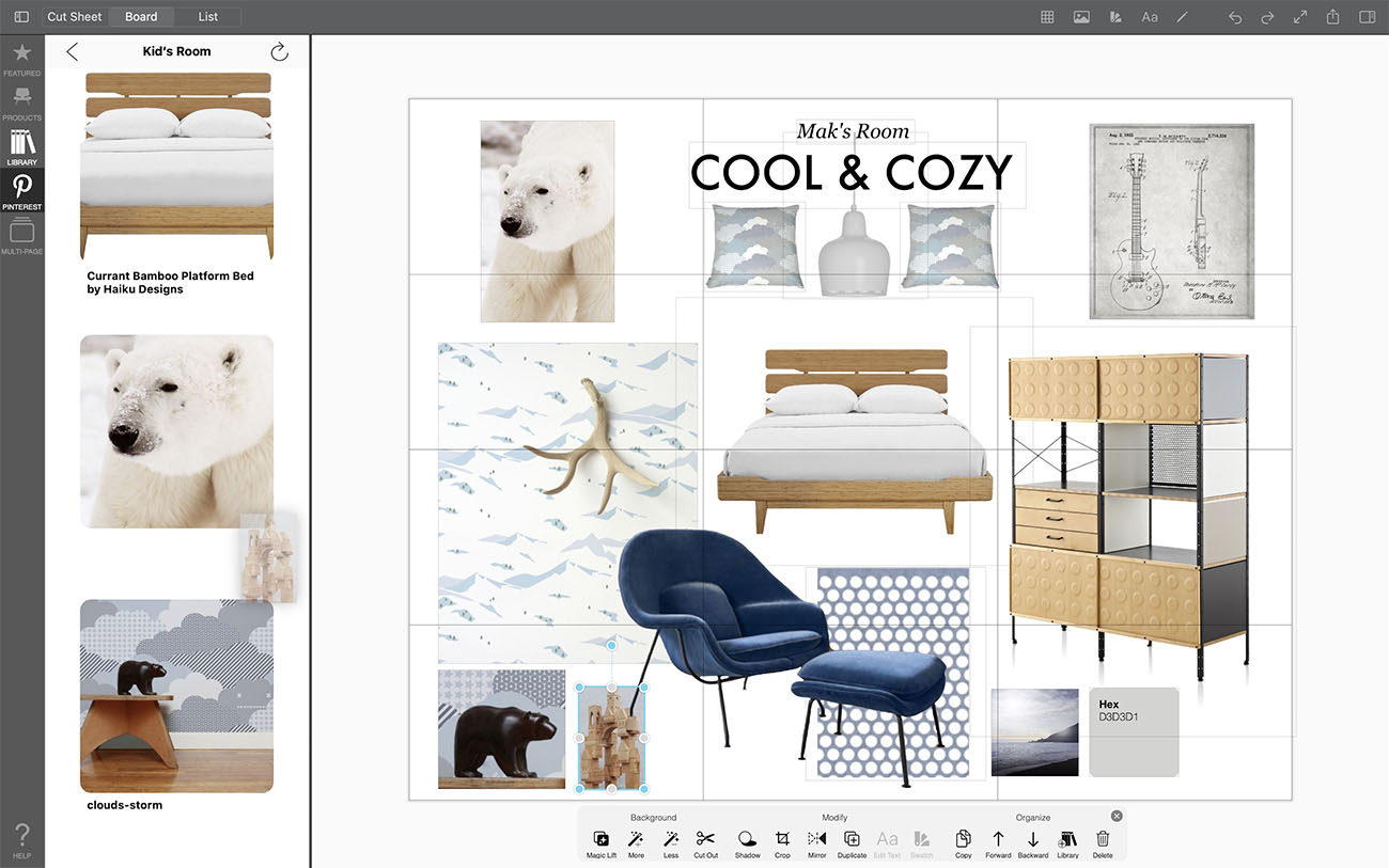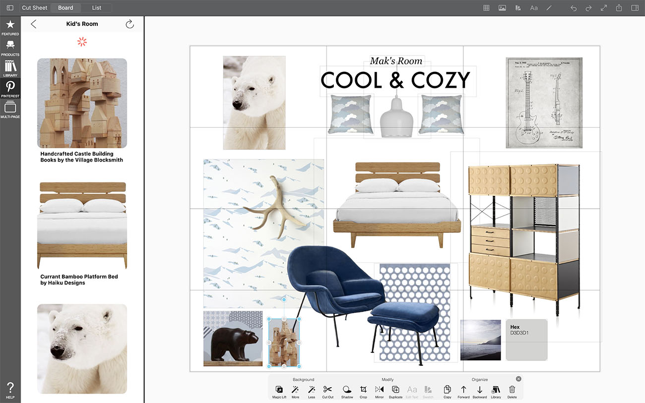 Pinterest is an essential tool for interior designers and creatives of all types. All of those inspirational images are just a tap away in your Pinterest Portal when you are moodboarding in Morpholio Board.