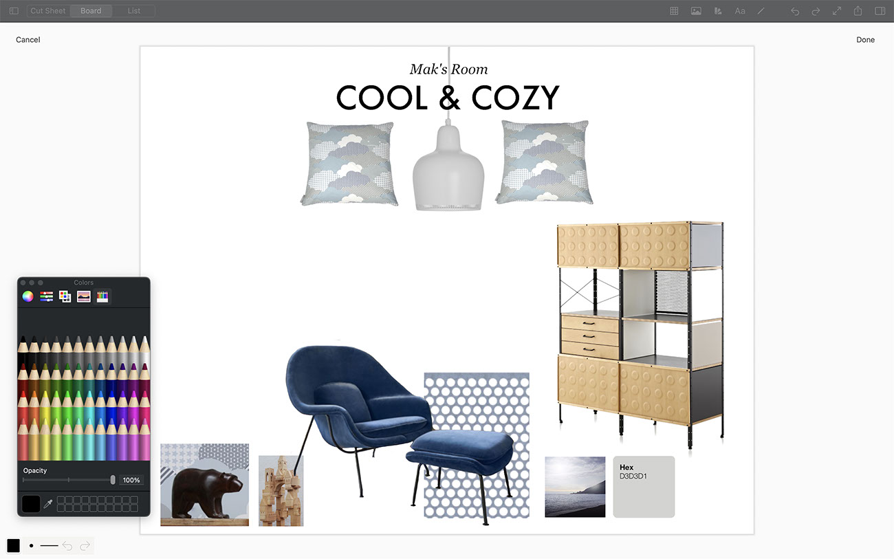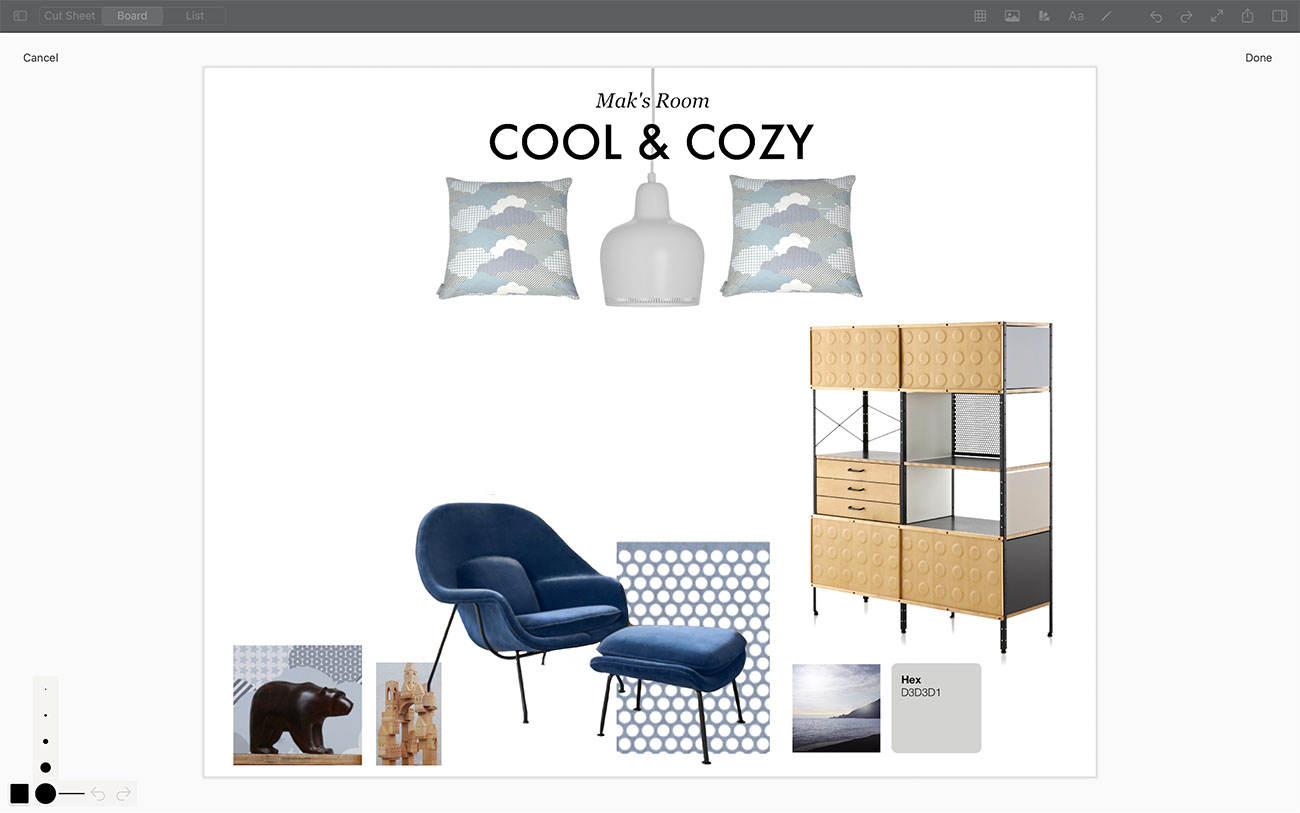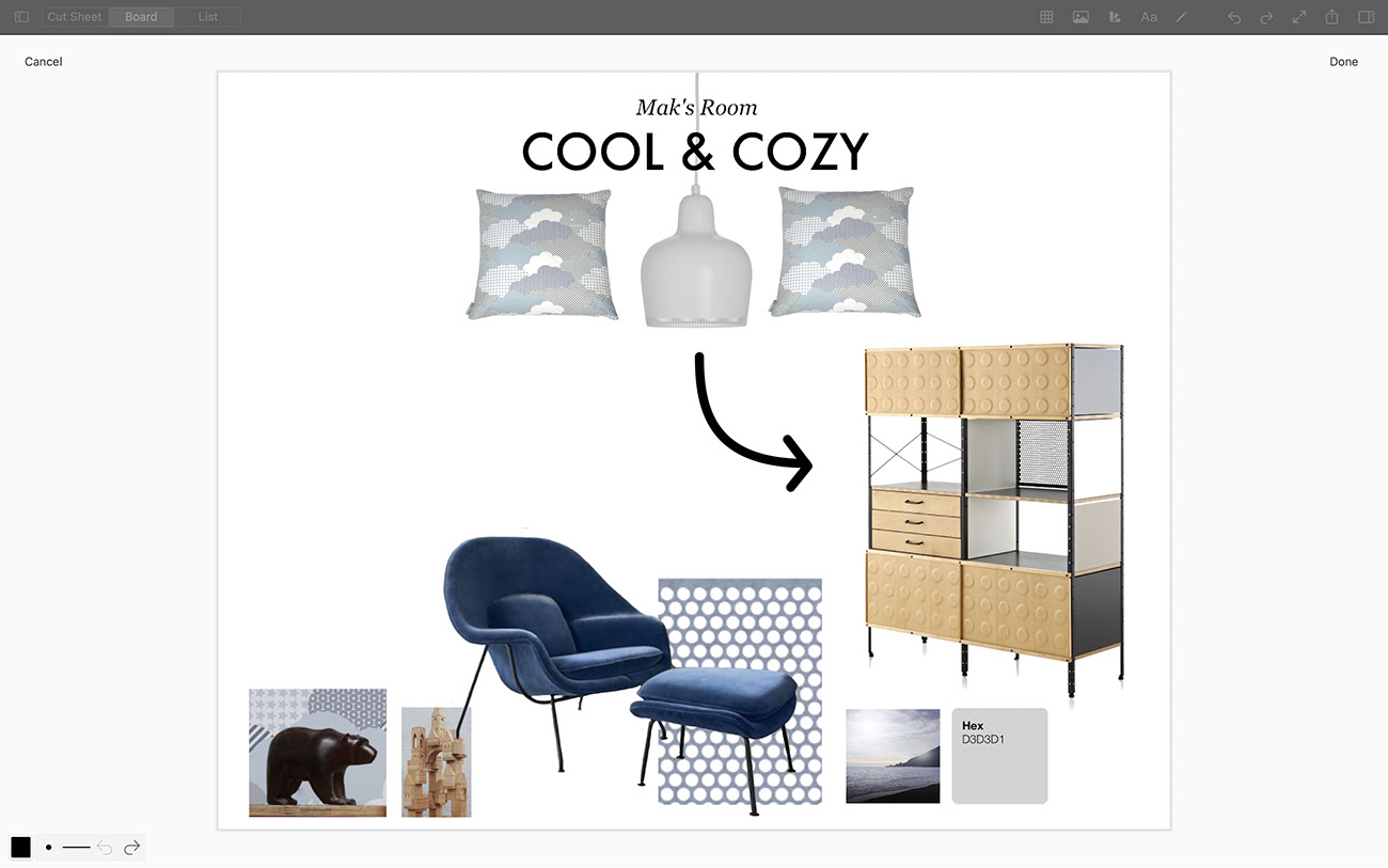 Sometimes, you need to add a quick sketch, an arrow, or your signature to your interior design moodboard. You can do all of that with "Draw" in Morpholio Board!