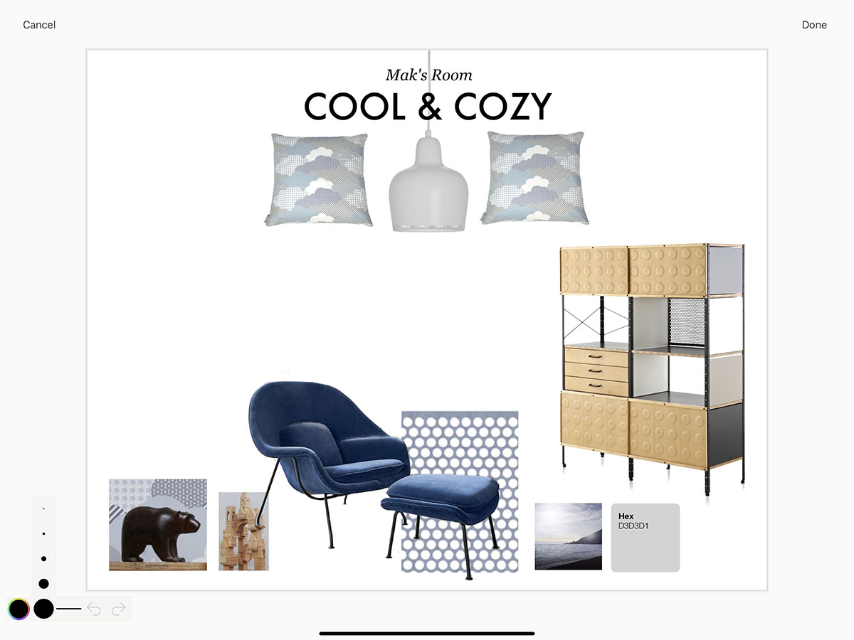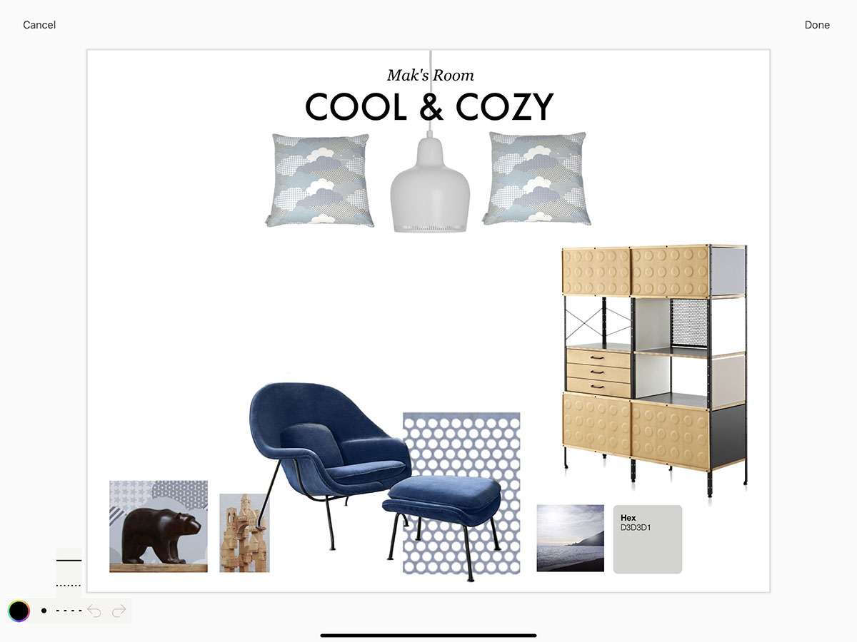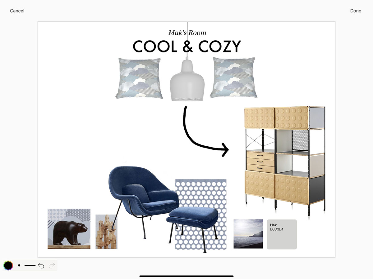 Sometimes, you need to add a quick sketch, an arrow, or your signature to your interior design moodboard. You can do all of that with "Draw" in Morpholio Board!